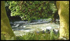 Adding gray to the colors of the rain forest are the ever-changing river bars alongside streams, the east and north forks and the main flow of the Quinault River. The Quinault meanders from side to side. The river's dynamic force changes the forested benches or slopes to a gravel bar and causes biological systems to be uprooted and moved. The actual riverbed only covers a small portion of the valley land. The benches and river bars that the flood waters carve out and form are the core of land development for the forest and wet lands. The river provides quiet water for fish habitat, microorganisms, invertebrates and waterfowl. Wood debris creates resting areas for fish and fowl. The Quinault River is the driving force of the entire rain forest community.